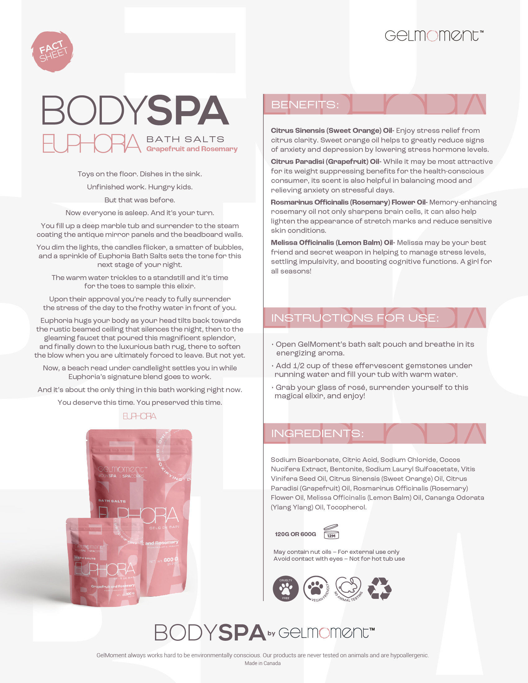 Stimulate the senses with this relaxing bath experience. GelMoment’s new Bath Salts will provide the bliss and nourishment you need after a long, stressful day being the boss. These revitalizing gems should be in every member’s arsenal.